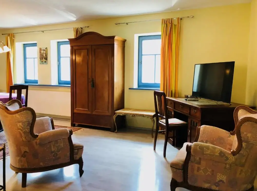 De Thuringian HOF was de basis met zijn restaurant naar het appartementhuis! Helaas waren de gerechten die we hadden in een snackbar! Daar heb je geen kok voor nodig! Wiener Schnitzel Tk. Gebakken in de olie en friet en wat salade, voor ongeveer € 23,00, nee bedankt!